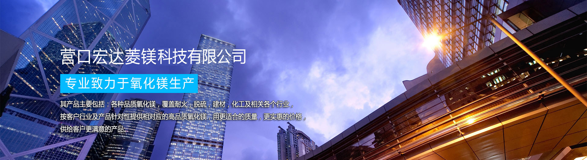 營口宏達菱鎂科技有限公司是一家專業(yè)以氧化鎂為主的企業(yè),成立于2009年,公司自創(chuàng)立以來一直專業(yè)致力于氧化鎂生產(chǎn),不斷發(fā)展壯大,始終發(fā)揚“誠信務(wù)實,質(zhì)量至上”的企業(yè)宗旨,以“品質(zhì),服務(wù)”為立業(yè)之本的企業(yè)精神,并形成一套嚴格把關(guān)的產(chǎn)銷模式。
